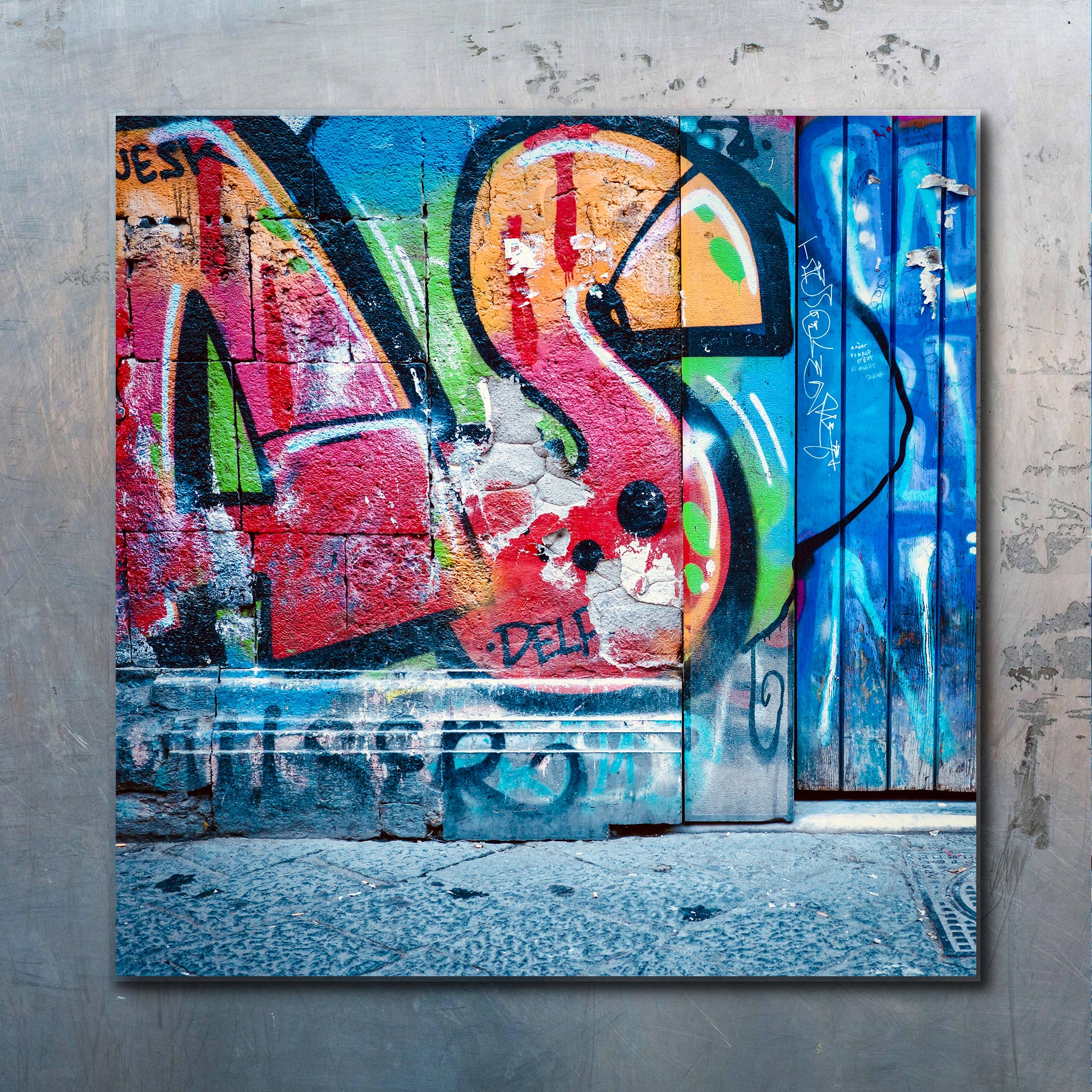 hochauflösender Druck auf eine Metallplatte, kaschiert auf eine MDF-Platte im Format 15 x 15 cm